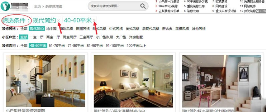 装修效果图实现多条件联动筛选带删除功能分享给大家。