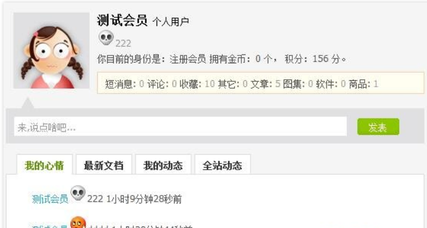 DedeCMS会员中心首页有两个小BUG,如果你的CMS没有把“我的动态”、头像旁边的“我的心情”正常加载出来。