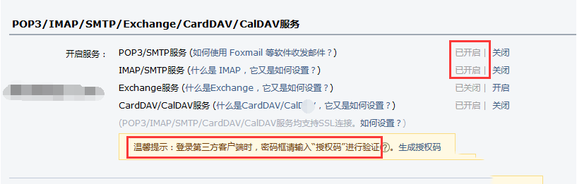 163邮箱开启POP3/IMAP/SMTP 也是要授权码的,他是自定义的,不能跟邮箱的密码一样,所以千万要记得自己设置的授权码,一会用到它
