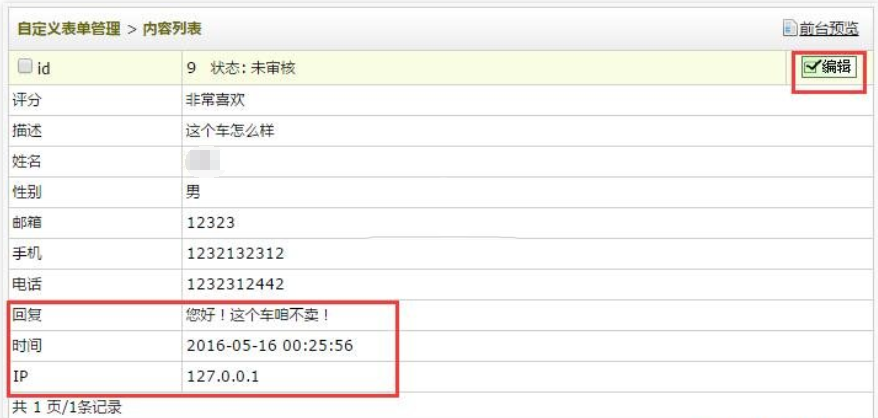 其实不用借助订单系统或者插件一样能达到这一的目的。下面以dedecms为例,进一步完善了自定义表单的客服回复、下单时间、用户IP等功能。下面橙色部分为自定义的字段。