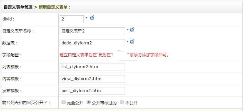 依次点击:后台-频道模型-自定义表单-增加新的自定义表单:
