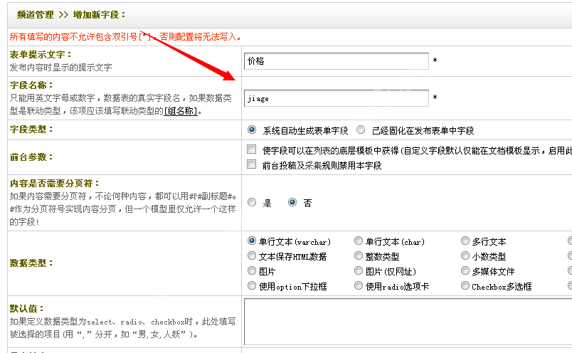 今天群里的网友问了一个问题,如何添加自定义字段,我们在做织梦建站的时候,有些时候满足不了需求,比如给文档添加一个价格、属性等。请看看下面的教程操作: