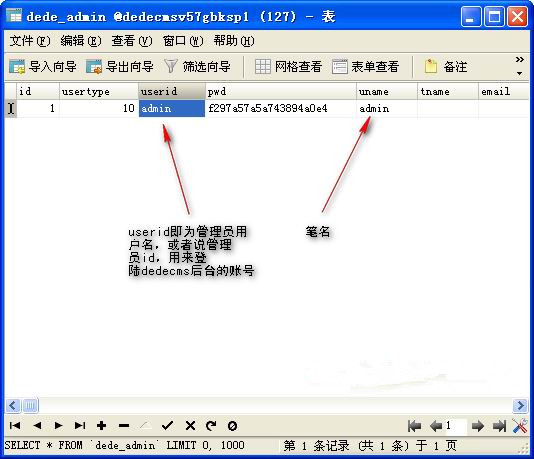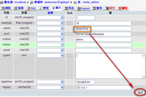 第三种方法、使用phpmyadmin修改DedeCMS修改管理员用户名