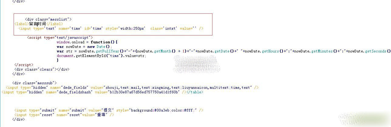 <input type="hidden" name="dede_fields" value="mytime,textchar" />