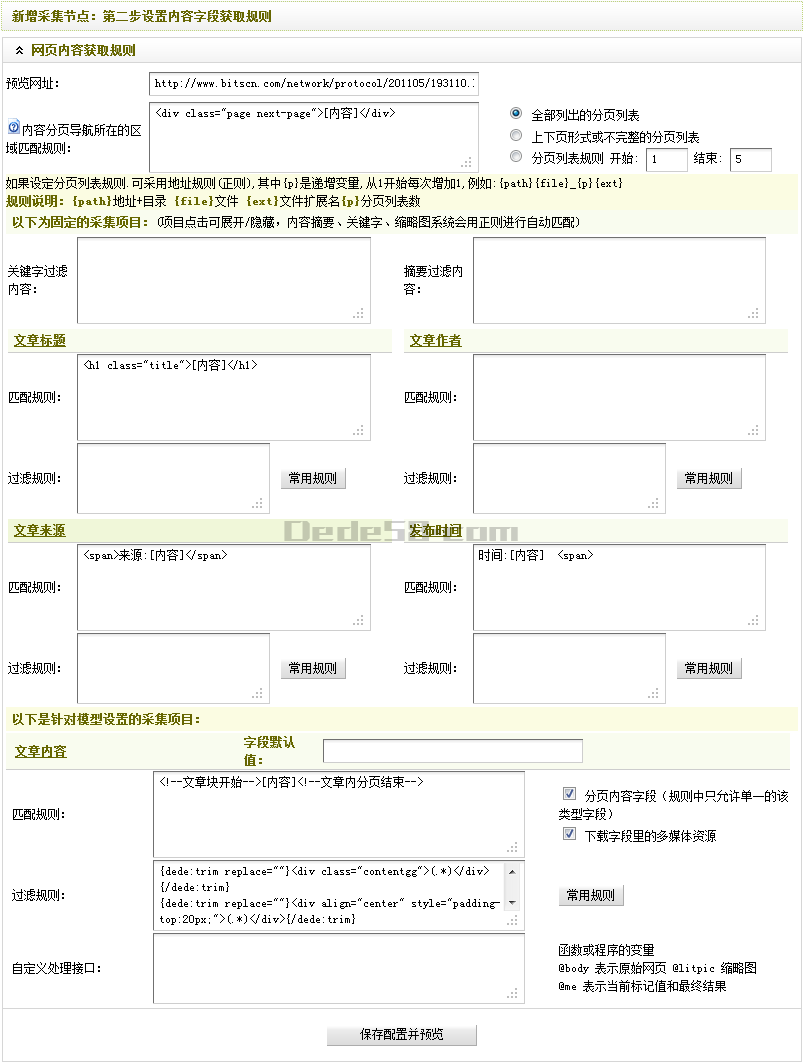 这个部分是编写采集规则的重点,也是难点。需要特别注意。