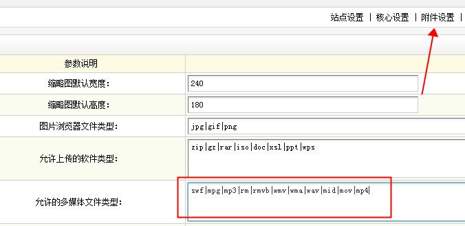 一:后台系统设置 上传附件 添加MP4格式,如图所示