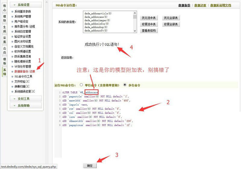 3-2、后台-系统-SQL命令行工具,执行如下语句,注意你的附加表名,千万别搞错了