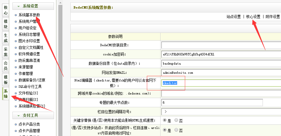 但是dedecms默认的编辑器其实是ckeditor,所以需要重新设置为ckeditor。客户一个不小心修改了编辑器,就出现了上面文章编辑调用不了编辑器的情况。