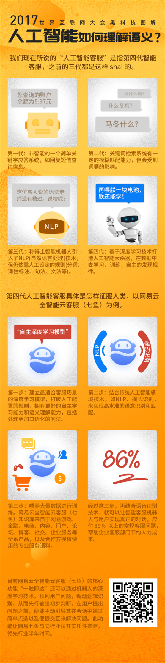 网易全智能云客服(七鱼)资深行业架构师张统认为,在当下这个阶段,机器人还不能完美替代人工,但在网易全智能云客服(七鱼)人机协作模式下,机器人和客服之间能够通过高效协作来提升办事效率。此外,网易全智能云客服(七鱼)核心功能“一触即达”通过机器人的深度学习技术,可以预判用户问题,调动逻辑识别从而先行输出初步判断,在用户提出问题之前,便主动引导其在会话中通过简单点选以及便捷交互来解决问题,让机器进化到为用户提供有温度、个性化的办事。