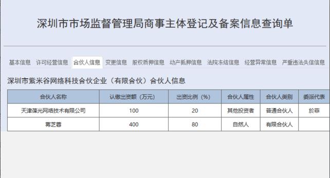 而别的一家股东企业深圳市紫米谷网络科技合伙企业的GP也是於菲百分百持股的天津葆光网络技术有限公司,即深圳市紫米谷网络科技合伙企业持有的10%迅雷大数据公司股权的投票权也由於菲掌握;别的一家天津市瑞趣科技合伙企业的股东里有疑似於菲的亲属於蕾。因此,於菲至少掌握了迅雷大数据公司40%的投票权和决策权。