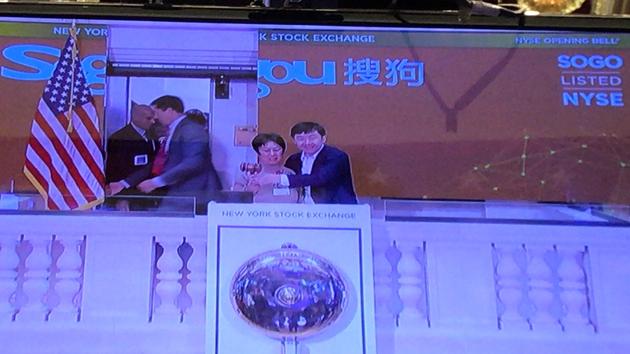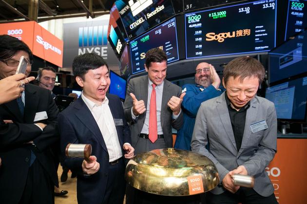 北京时间 11 月 9 日晚22:30,搜狗在纽约证券交易所正式挂牌上市,股票交易代码为“SOGO”,发行价为每股美国存托股(ADS) 13 美元。开盘价报 13 美元,与发行价持平,市值达到50. 96 亿美元。