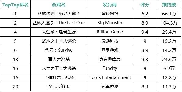 而事实上,在游戏社区 TapTap 的九月以及十月的新游预约榜单上,有超过十款这样的游戏几乎都是「换皮」之后的《绝地求生:大逃杀》。在更早时候,一些根本不是这种游戏,但宣传时也使用类似截图的「钓鱼游戏」,甚至也在短时间内有过不错的下载量,玩家们对于这样的「换皮」似乎也很认可,这种现象在手游这些年的发展中十分罕见。