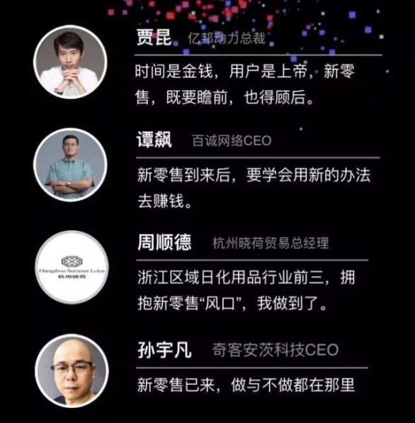 以亿邦动力为代表的特邀嘉宾重磅来袭,让转型成功的杭州晓荷告诉你“如何将日用品这件小事做到浙江行业前三”,自建平台的百诚网络传授你“新零售时代如何让家电更有家的温度”,电商最大门户的亿邦动力为你讲解“新零售到底是什么样儿”。不但如此,还有小红书这样的年轻品牌与众多电商专家带你走进新零售的虚与实,大数据的看与用。