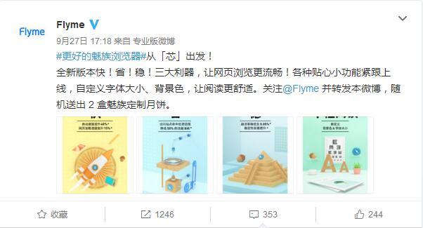昨天,Flyme官微发布微博:“更好的魅族浏览器,从‘芯’出发”,并搭配了四张凸显“快”“省”“稳”和“个性阅读 ”特性的创意海报。海报中还透露出一个重要信息,即“UC开放平台提供技术支持”。也就是说,魅族浏览器与UC实现了“合体”,将引入新的浏览器内核技术,实现自身性能的大提升。