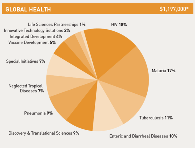 盖茨基金会 2016 年用于全球健康事业的支出细分比重