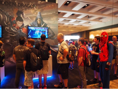 PAX West在绿洲游戏《Hidden Dragon Legend(隐龙传)》展台前排队的玩家