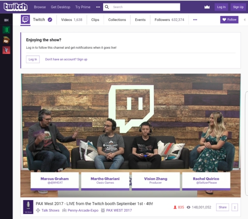 Twitch的PAX West直播频道开启后,不雅观看人次已经过亿,比展会的线下客流量更高