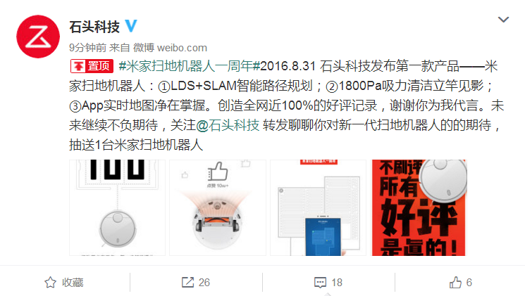 在秀了一波数据后,米家扫地机器人的研发团队石头科技在今天上午对米家扫地机器人的卖点总结后,凸显了石头科技的技术实力。而微博末尾的一句“你对石头科技的新产品还有什么期待?”不禁让用户翩翩联想。