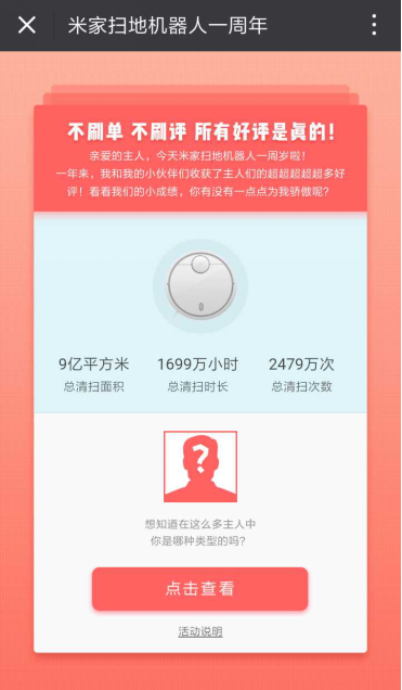 本来,今天是米家扫地机器人发布一周年纪念日。 2479 万次的清扫次数、 1699 万小时的清扫时间、 9 亿平方米的清扫总面积、84%的无人值守清扫任务,这是米家与石头科技在过去一年中共同呈现给消费者的满意答卷。
