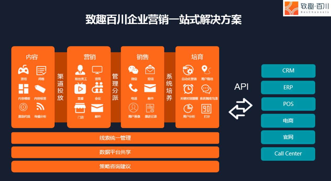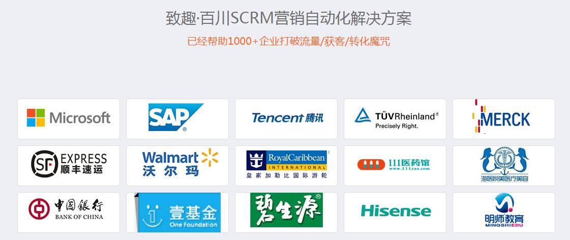 致趣百川前身时趣SCRM尺度软件事业部,已有的左脑技术右脑创意基因,,让致趣百川在营销运营软件与技术与品牌社交营销办事、广告技术办事的配合上有着天然的优势。成功入选微软加速器北京第十期,助力致趣百川SCRM营销自动化用技术驱动营销,基于对于营销技术的大力投入,基于对营销全流程闭环的深刻理解,致趣百川将不停帮手客户取得获客、转化上更大的成功。
