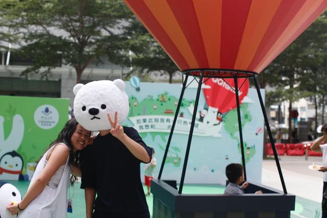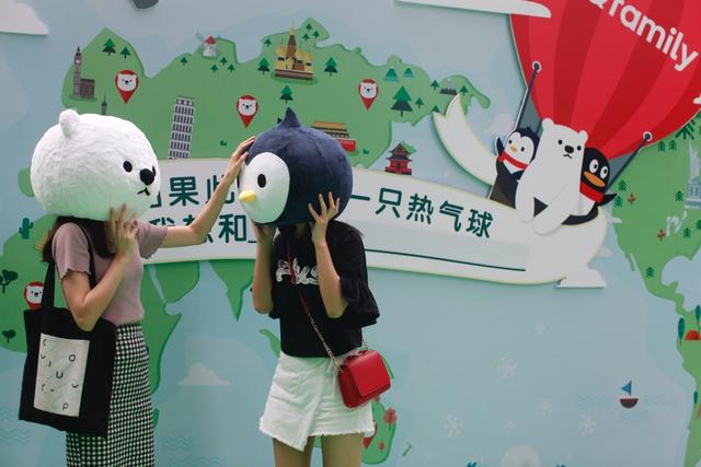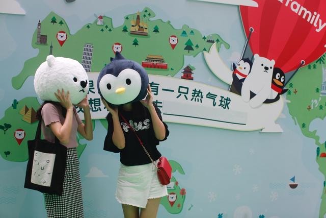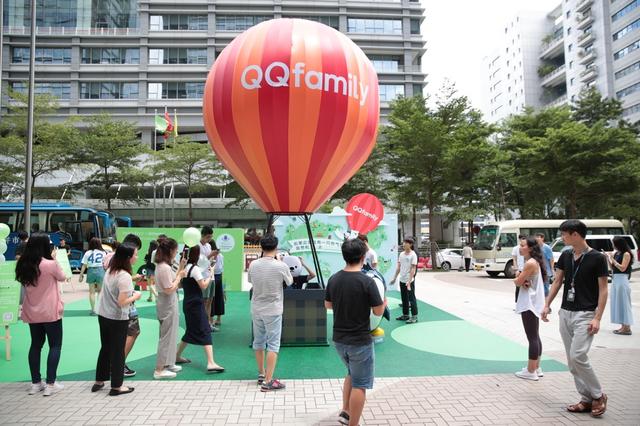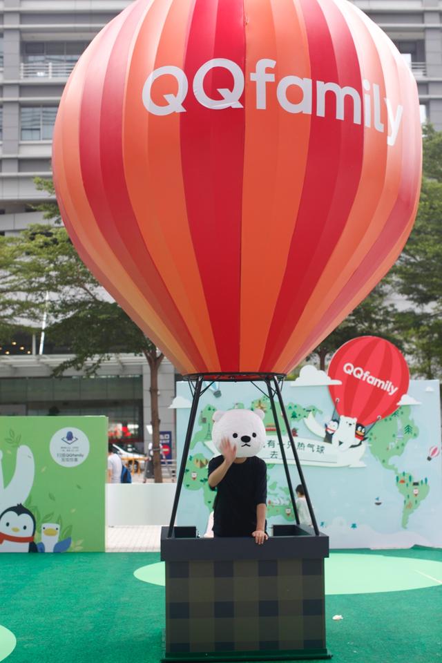 活动当天,远远就看到腾讯大厦北广场上从天而降的QQfamily热气球。说走就走已经过时了,说飞就飞才是最in的操作。于是一波鹅厂妹子小哥涌向热气球,带上QQfamily道具头套卖起了萌,放飞的表情美滋滋~