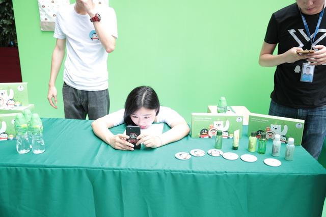 现场工作人员抵不住萌萌QQfamily的诱惑,辛苦之余也给本身来了一张萌萌的宠爱自拍。