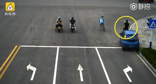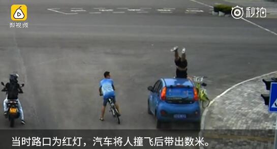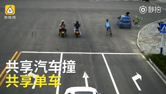 日前,安徽某路口发生一起车祸,肇事车辆系一辆蓝色共享汽车,被撞者是一名骑共享单车的男子。据监控显示,,被撞者当时在路口等红灯,突然从边上窜出一辆汽车。汽车将人撞飞后带出数米远。旁边的小哥见状迅速上前查看情况并报警。