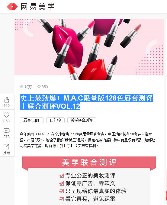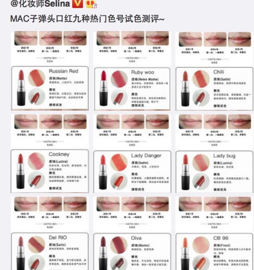 粉丝数六七十万的微博大V@化妆师selina也被网友举报其颁发的微博文章《MAC子弹头口红热门色号试色评测》,抄袭网易美学评测文章《史上最劲爆!M.A.C限量版 128 色唇膏测评丨联合测评VOL.12》。除了排版变更了一番外,案牍基本又是如出一辙……