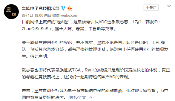 仁者见仁,智者见智,经常有一些这样的新闻,,玩家、选手被曝光出来,也证明了LOL的活力仍在,让我们一起期待这位皇族青训的小队员在未来的世界电竞舞台绽放出更大的光芒!