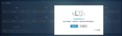 思途CMS为新用户准备了一份操作指引,帮手用户快速了解和使用系统。新用户在首次使用系统时,,将会出现指引界面,引导用户完成网站和产品配置。