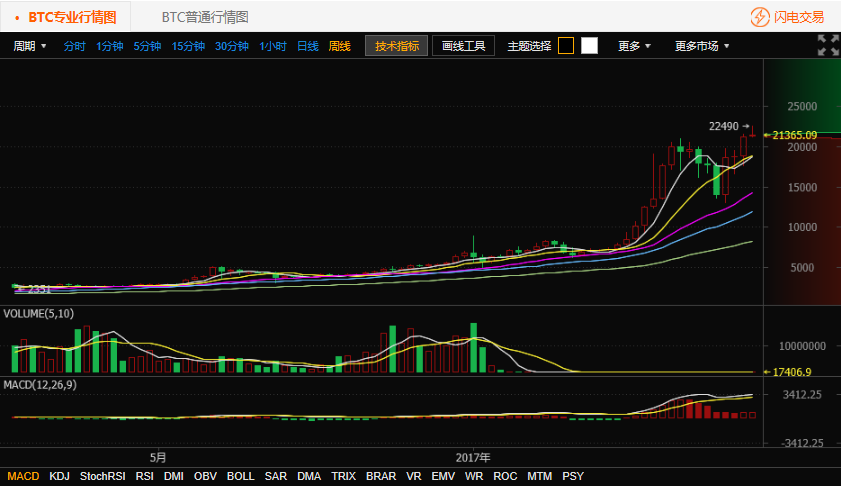 BTC比特币行情周线图来自火币网