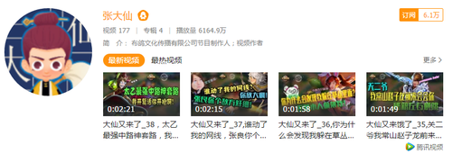除日常直播外,张大仙的还制作了《大仙指法秀》《大仙又来了》等自制节目,英雄教学视频播放总量达到惊人的 6164 万,露娜、赵云、李白、猴子...教学视频基本涵盖了游戏内的所有英雄,堪称教学级别的游戏操作。