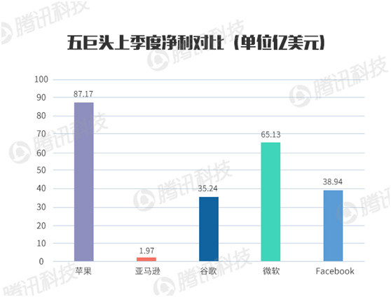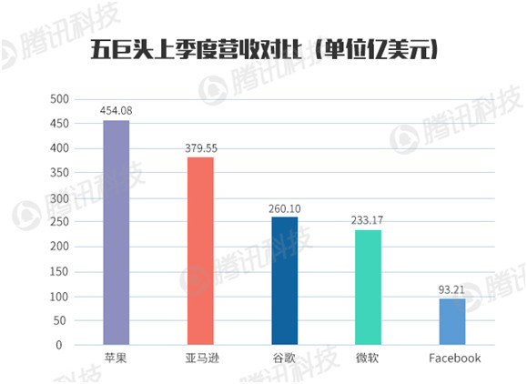 近日,又到了上市公司扎堆公布季度财报的时间。苹果、谷歌、微软、亚马逊、Facebook,这五家美国顶级科技巨头的最新一季财报都新鲜出炉了。从财报数据看,几大巨头表示纷歧,腾讯科技从中摘取一些关键的数据进行分析、对比,或许会让你对这些公司上个季度的“收成”有一个更为直不雅观的认识。