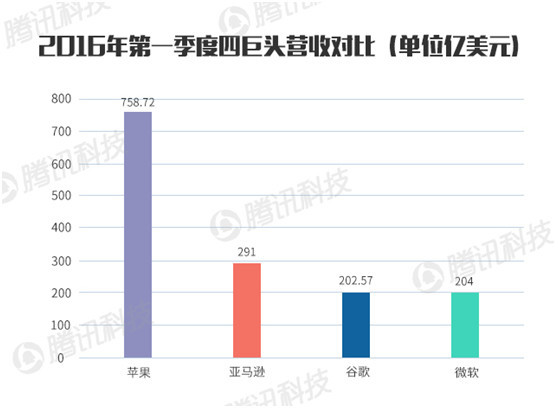 虽然苹果一直处于领先地位,但是这并不是苹果最辉煌的时候。按照 2016 年第一季度财报数据显示,苹果的营收甚至大于亚马逊、谷歌和微软三家营收之和。如今其他几大科技公司迎头而上,由此可见,苹果要想一直保住第一的宝座还是不能掉以轻心。