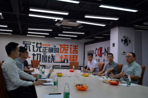 8 月 1 日,人人乐集团总裁何总、电商负责人沈总等领导莅临大腕互联考察与洽谈合作,大腕互联董事长王义辉与大腕互联子公司素米设计负责人钟尚锦对其到来进行了热情接待,双方针对人人乐集团互联网转型项目人人乐园的设计进行了深入交流。