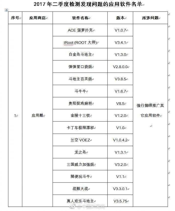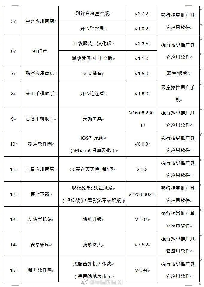 据中国新闻网报道:今日,工信部公布了 2017 年二季度检测发现问题的应用软件名单。其中包孕酷派应用商店的“天天网鱼”、中兴应用商店的“别踩白块星空版”、三星应用商店的“ 50 美女天天换 第 1 季”等 42 款APP。这些应用软件涉及恶意“吸费”;强行绑缚推广其它应用软件;未经用户同意,,收集、使用用户个人信息;恶意操控用户手机等问题。