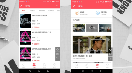 “演唱会”、“音乐会”、“话剧歌剧”、“儿童亲子”等版块,展示垂直细分市场,自身数据透明化,满足多样化需求,实现线上购票,线下体验配套性的办事。