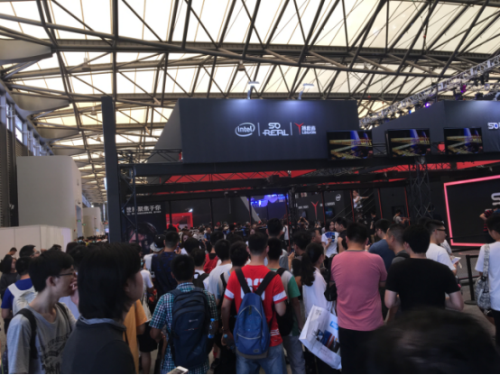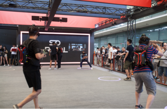 VR游戏已发展多年,但目前却还大都停留在“小空间+PVE”的模式,SoReal则采用了全新的激光定位技术,首次实现了“大空间自由行走+PVP”的突破。玩家们进入虚拟世界后,不但可以在虚幻的环境中体验游戏情节的紧张刺激,还可以全场自由跑动躲闪腾挪,真正地让本身成为“戏中人”。这种浸入式的体验,甚至可以说是电子竞技与传统体育的完美结合。不但可玩性爆棚,还极大降低了成本,也让VR游戏由此具备了大规模推广甚至是具备社交属性的可能。SoReal展馆所在的“未来竞技”位置旁边还恰好是联想的传统竞技,经典与创新也由此碰撞出了别样的激情火花。展位中表态的2V2 真人对战射击游戏前排成的人海长龙更是证明了其火爆的吸引力——终究,谁不想成为更真实的英雄呢?