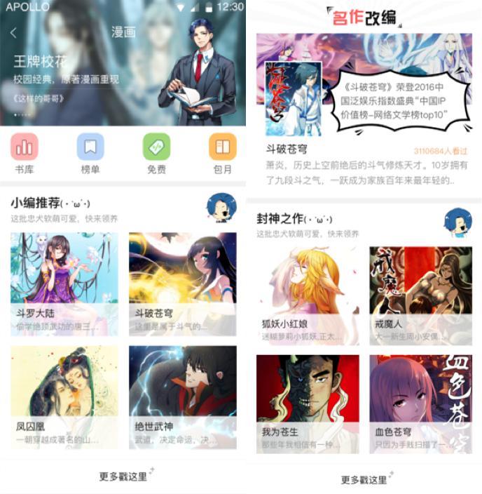 其中,新增的漫画测试版块是最值得一提的——源于二次元文化的盛行,漫画俨然成为了IP代表版块。既有《海贼王》《网球王子》等经典大热漫画,也有《择天记》《鬼吹灯》等由阅文集团小说IP改编而成的漫画。为了给予用户最佳的体验,QQ阅读收录了 2000 多部付费漫画, 20000 多部免费漫画。其中包孕了近 40 部由阅文集团的原创文学IP改编的漫画, 1000 多部正版日韩漫画。