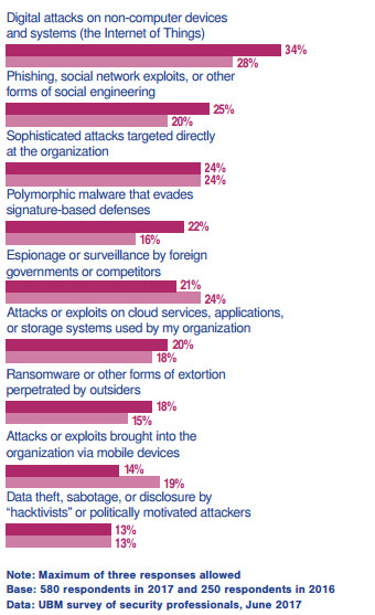 由于能吸引众多专业的参会者,黑帽大会每年会借机做一份信息安适行业的调查问卷,会提出很多业内人士非常关心的议题,并从中预测新的行业发展趋势,近日,雷锋网就发现 2017 年的调查结果已新鲜出炉。