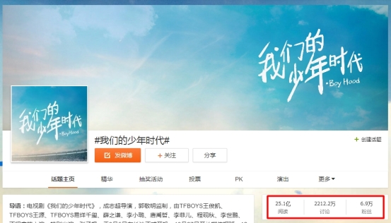 自带爆款基因的《我们的少年时代》剧情已经过半,收视居高不下蝉联第一不说,更是连续霸屏,成为七月微博上的流量王,开播到现在,话题阅读高达25亿,可见其热度。