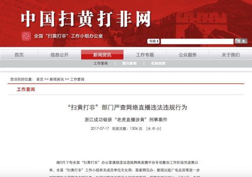 4 月 2 日,,接到案件线索后,浙江省绍兴市公安局立即成立专案组开展案件侦办工作。在省“扫黄打非”办公室、省公安厅治安总队的指导下,在腾讯、阿里等公司的技术支持下,专案组侦查摸清了“老虎直播”的组织结构、涉案人员和资金走向等情况。