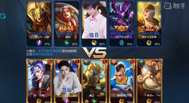 阵容上,嗨氏方:杨戬、张飞、不知火舞、宫本武藏、虞姬,输出和肉都是有的,不过都是点控和单体发作,对线厉害,团战就略微有所欠缺。剑仙方:高渐离、李白、鬼谷子、马可波罗、老夫子,马克、高渐离aoe十足,团战作用出众,但是对线能力不足,在对手玩的好的情况下很难起来,不过一手鬼谷子选的也是迷,最后确实也死成了迷。