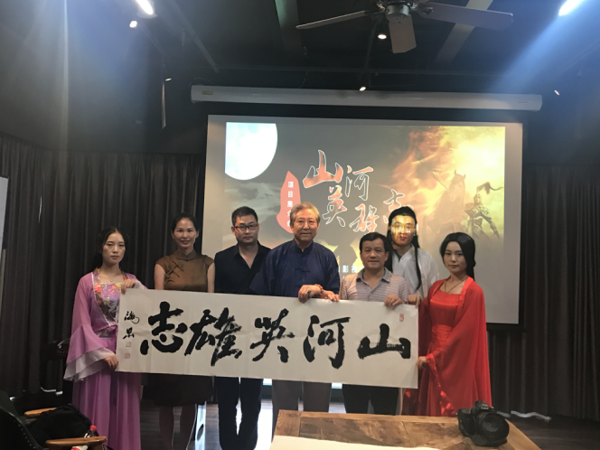 最后,由著名书法家宋玉生先生为《山河英雄志》献墨,苍劲有力的五个书名大字,将作品的厚重感表现出来,众嘉宾手持书法题字,共同开启签约仪式。