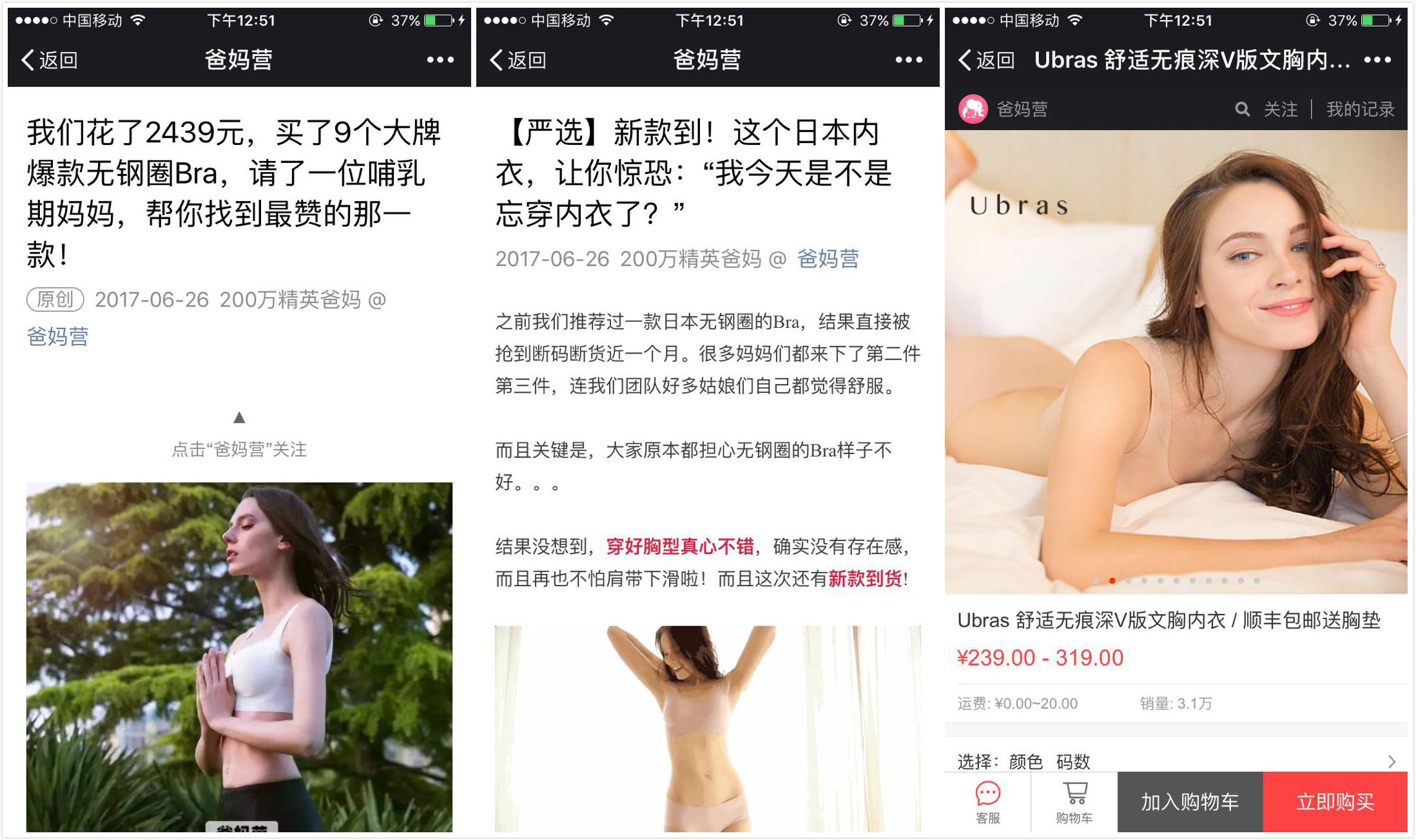 分销产品Ubras的图文推送及商品页