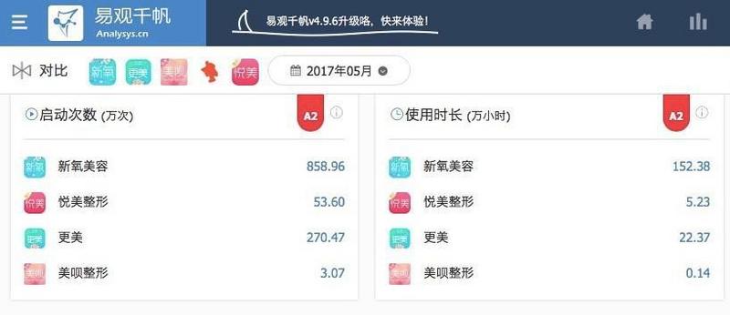 传统医美机构大多从线下渠道代理获客,获客成本较高;而互联网医美平台借助互联网手段运营,线上获客,配合营销策划,能有效提高用户粘性;商家通过平台了解用户浏览页面、咨询、下单、支付、预约、验证等整套流程的数据,在线上就能吸引用户到店消费,有效降低了获客成本。第三方平台易不雅观千帆数据显示, 5 月份新氧App启动次数达 858 万次,使用时长为 152 万小时,大幅度高于同类产品。