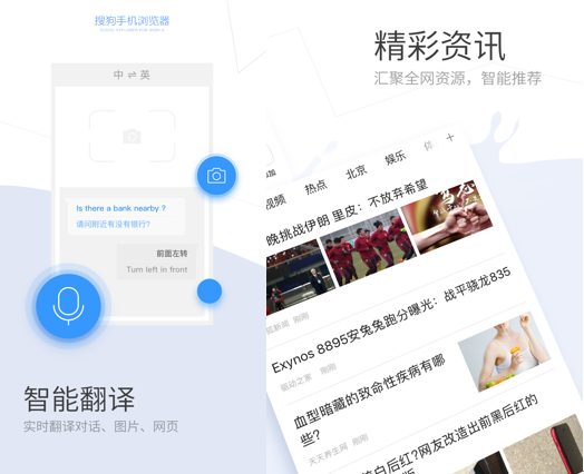 作为唯一具备智能翻译功能的手机浏览器,搜狗手机浏览器还拥有海量丰富的小说资源并配备了小说阅读时免翻页的智能拼页功能;丰富的新闻资讯和内容入口以及贴心的护眼色功能让你长时间浏览网页也不伤眼睛,随时可以用来打发旅途中的无聊时光,无需再安置其它软件,是出国旅行的必备首选。