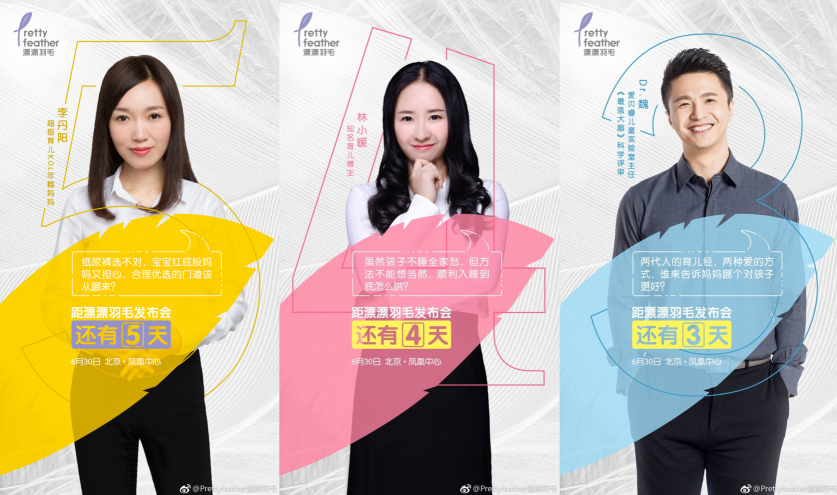 结合漂漂羽毛的品牌定位,本场发布会必定少不了母婴界的大咖。官方倒计时海报给出了初步答案——年糕妈妈、林小暖、Dr.魏。除了他们,现场还会有哪些母婴大咖?既然有育儿界KOL的出席,是不是意味着现场将会有明星与母婴大咖分享干货满满的育儿知识?
