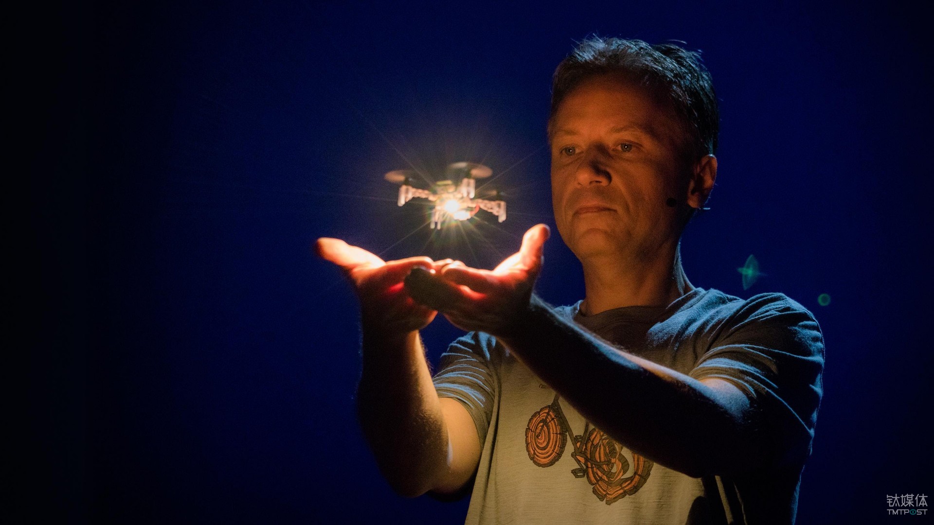 事实上,这是整场演出中获得观众惊叹最多、掌声最热烈的节目。无人机团队来自于瑞士的 Verity Studios,去年底他们在钛媒体年度盛典上首次在华亮相,也正是这次首秀被张艺谋团队看中。它的创始人拉菲罗·安德烈(Raffaello D'Andrea)曾经帮助康奈尔大学的机器人团队获得了四次机器人世界杯大赛的冠军,他作为联合创始人创办的 Kiva Systems 也被 Amazon 收购。