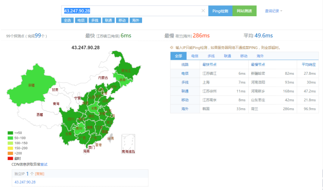 毫不逊色的CPU处理能力和极佳的IO测试结果也给我带来了极大的惊喜。可见他们官网一再强调的高性能不光只是嘴上功夫,这一点,对于像我一样实际有需求的用户还是很关键的。我们需要的不是一个相对的低价,我们需要的是性价比。低价给我带来一台没法跑业务的云主机于我而言又有何意义?另一方面,作为面向客户提供办事的平台,客户实际的拜候体验也是我们极其关注的点,带宽是否优质,是否能适应国内复杂的网络环境也是我们衡量云平台的重中之中。之前托管在机房的办事器当时还停留在单线双线的阶段,那时可没把我给折腾的死去活来,不是移动的用户拜候不了就是联通的登不上,真是让人惆怅。实测了一下比格云的BGP带宽,电信,移动,联通,教育网连通性完全没问题,这很大程度上为我们中小型企业解决了中国网络环境复杂,宽带运营商多样化的问题。让我们能有更多的精力放在我们的业务上。ping了一下全国的网站,大陆地区全国的延迟还是比较令人满意的。